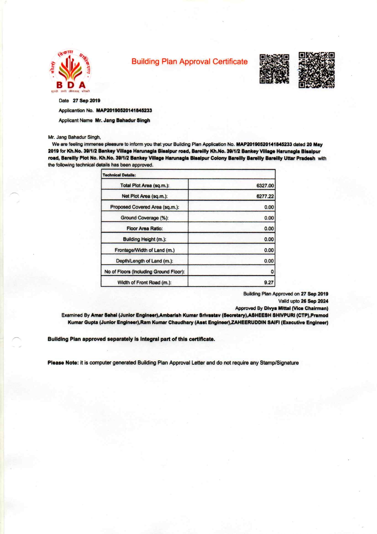 BDA Approval Certificate